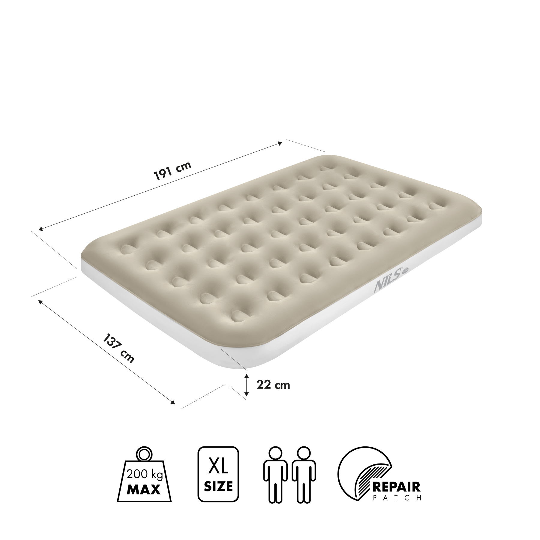 NILS CAMP NC2802 Materac turystyczny dmuchany 191×137×22 cm beżowy