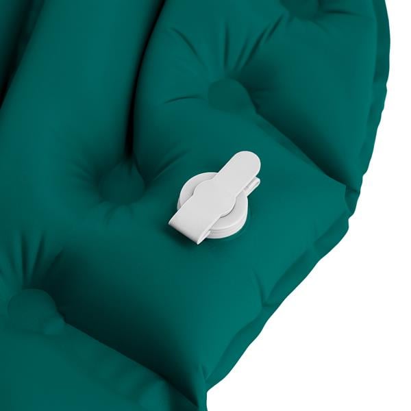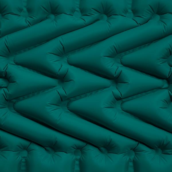 Mata jest nadmuchiwana — pompujesz ją własnym powietrzem lub pompką. Połączenie nylonu 40D z elastyczną powłoką TPU tworzy warstwę odporną na przebicia i rozdarcia. Materiał TPU charakteryzuje się dużą wytrzymałością w różnych warunkach atmosferycznych i nie ulega szybkiemu zużyciu. Mata sprawdza się zarówno na trawie, piasku, jak i na leśnym iglowisku — izoluje od wilgoci i nierówności podłoża. Przeznaczona dla jednej osoby, maksymalne obciążenie wynosi 100 kg.