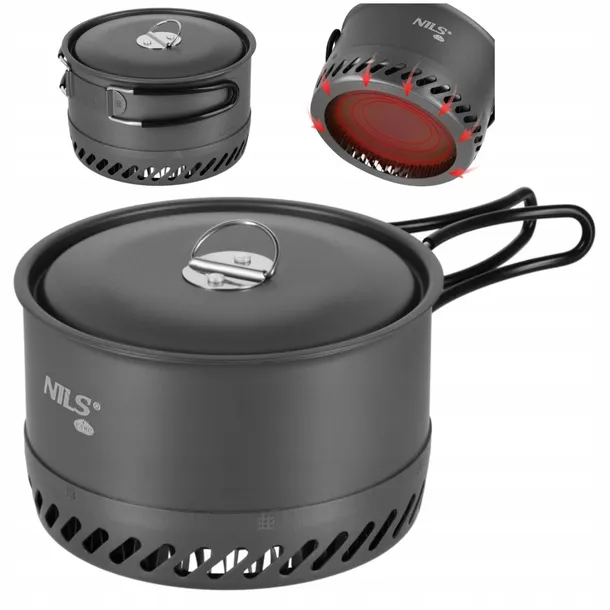 Nils Camp NC4203 Garnek turystyczny z radiatorem aluminiowy z pokrywą 1000 ml
