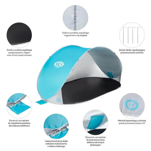 Cechy NILS NC3174 Turkusowo-Szary Namiot Plażowy Samorozkładający Podłoga