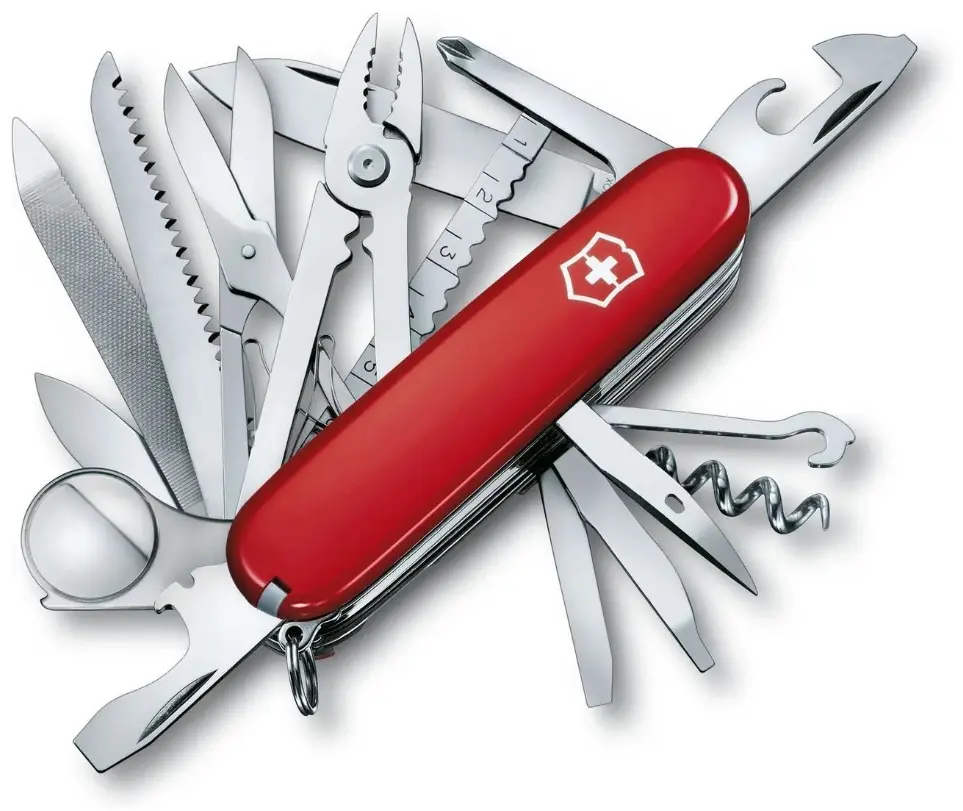 Scyzoryk Victorinox SwissChamp to uniwersalne narzędzie dla każdego, kto spędza czas w terenie, pracuje ręcznie lub potrzebuje niezawodnego pomocnika w domu. Wyprodukowany w Szwajcarii z najwyższej klasy materiałów, łączy funkcjonalność 33 narzędzi w kompaktowej, ergonomicznej obudowie. Czerwona koperta z tworzywa ABS/Celidor świetnie leży w dłoni, a lekka waga (185 g) sprawia, że bez problemu zmieści się w plecaku lub kieszeni.Kluczowe korzyści