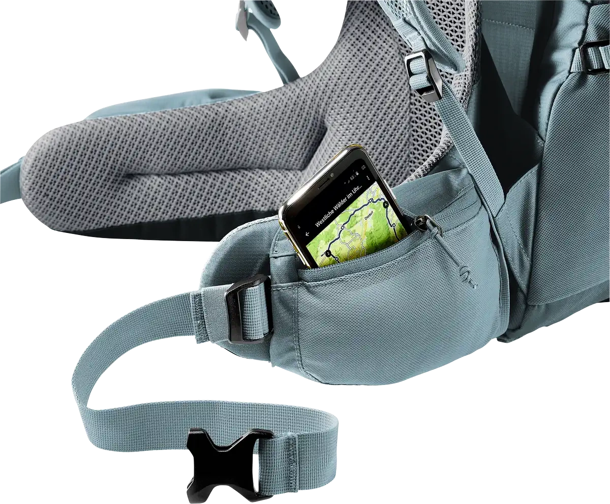 - Elastyczne pasy biodrowe i boczne kieszenie zwiększają wygodę i dostępność sprzętu w trakcie marszu.