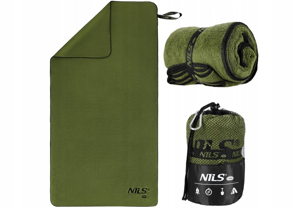 NILS CAMP NCR15 Ręcznik z mikrofibry wojskowy khaki 120x60 cm