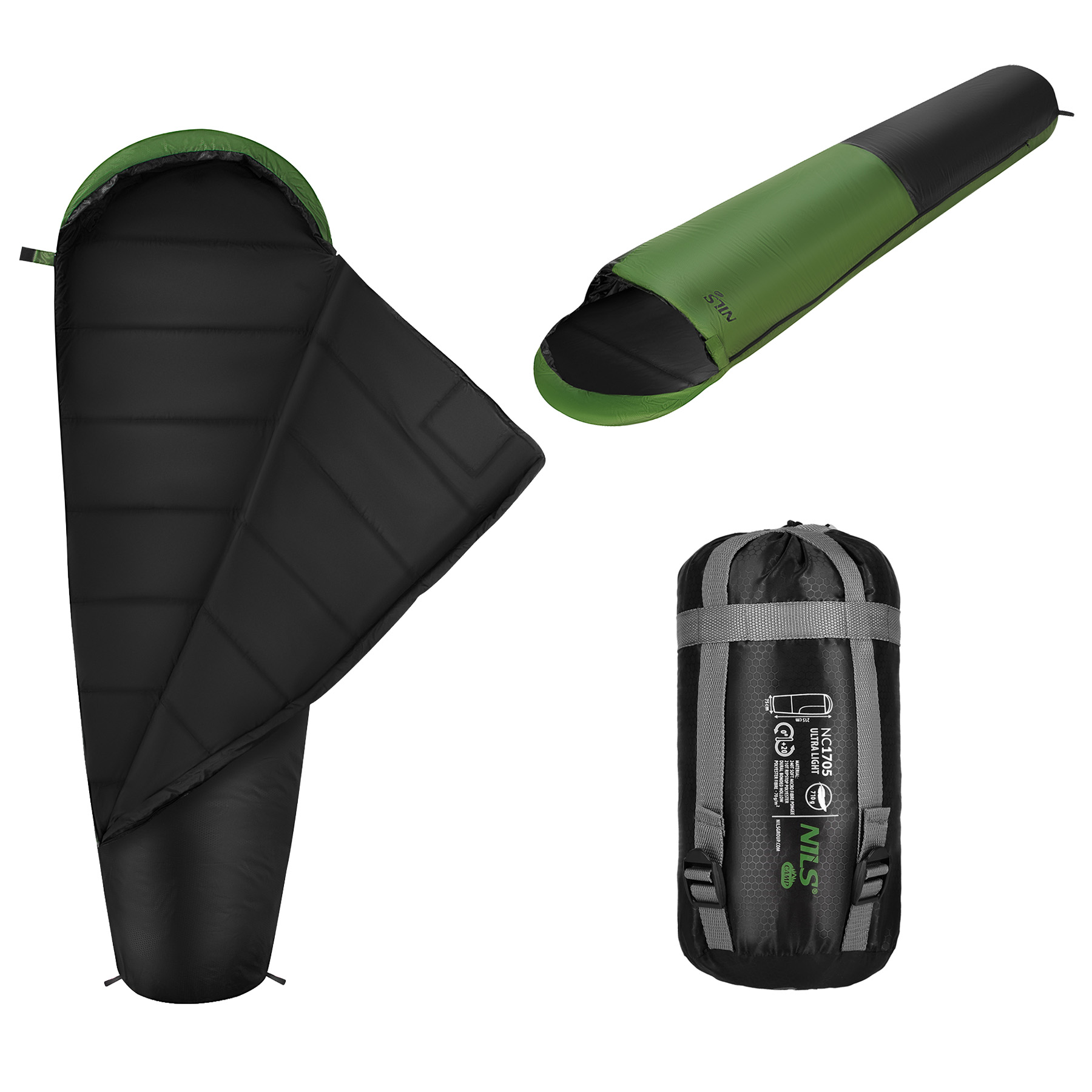 NC1705 Śpiwór Ultra Light Czarno-Zielony Nils Camp