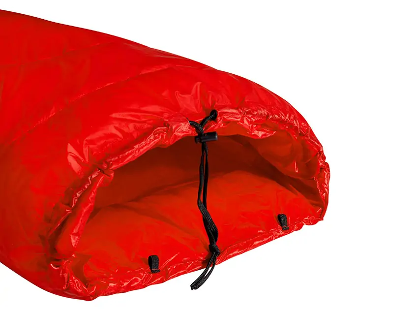 - Footbox w formie ściągacza – dzięki niemu, bez wychodzenia ze śpiwora możesz łatwo zwiększyć cyrkulację powietrza lub bez problemu wskoczyć do śpiwora i się ogrzać podczas drzemki, bez zdejmowania butów,