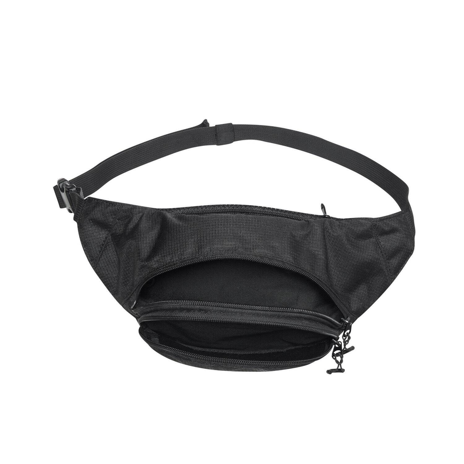 Saszetka posiada dwie zewnętrzne kieszonki – większą i mniejszą – zamykane na zamek, co ułatwia organizację przestrzeni. Wewnątrz znajduje się bezpieczna kieszonka z zamkiem na dokumenty i karabinkiem na klucze. Część przylegająca do ciała wykonana z oddychającej siateczki 3D Mesh minimalizuje pocenie się. Nadaje się do codziennego użytku, spacerów, podróży i lekkich wypraw.