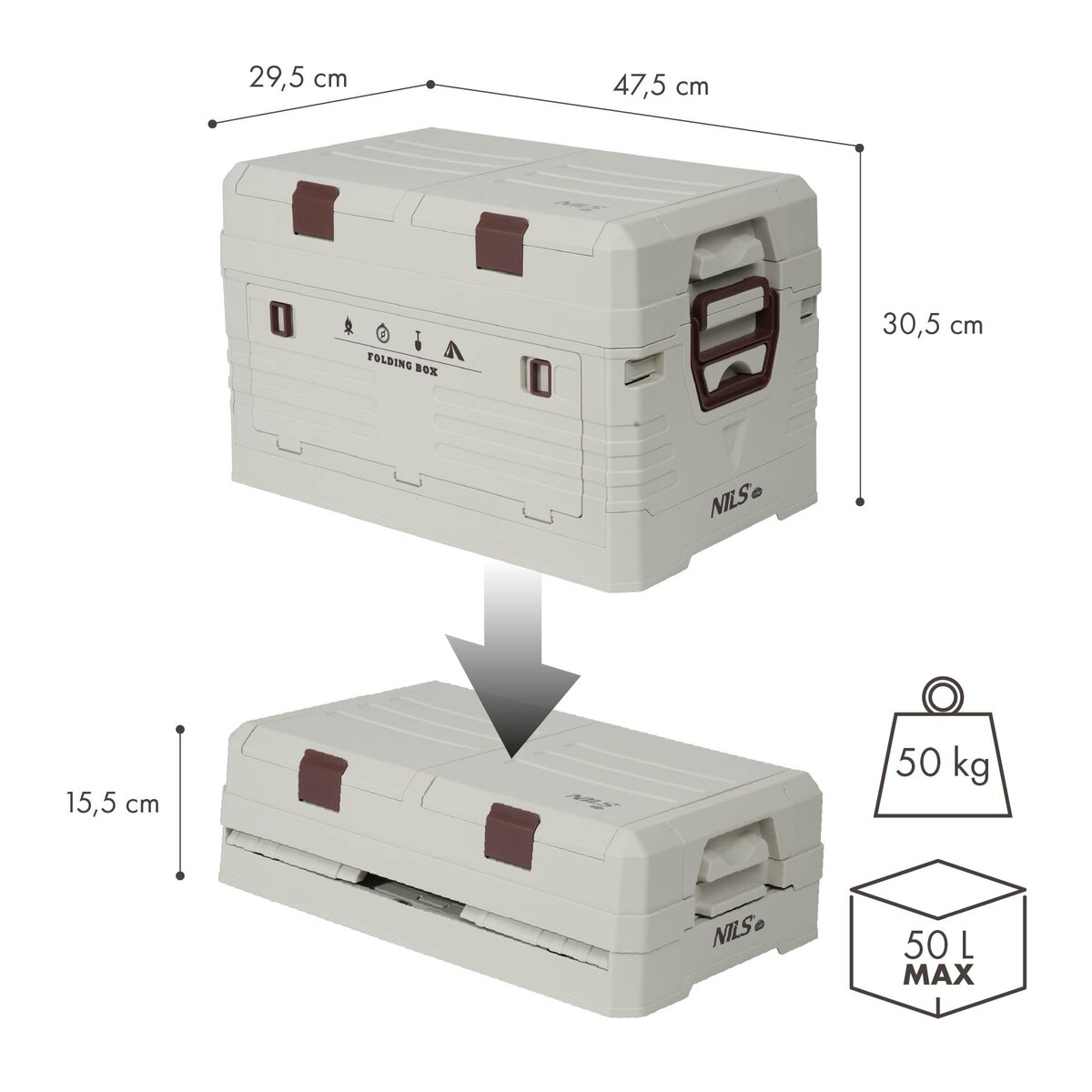 NILS CAMP NCB4003 składana skrzynia kempingowa 50L szara
