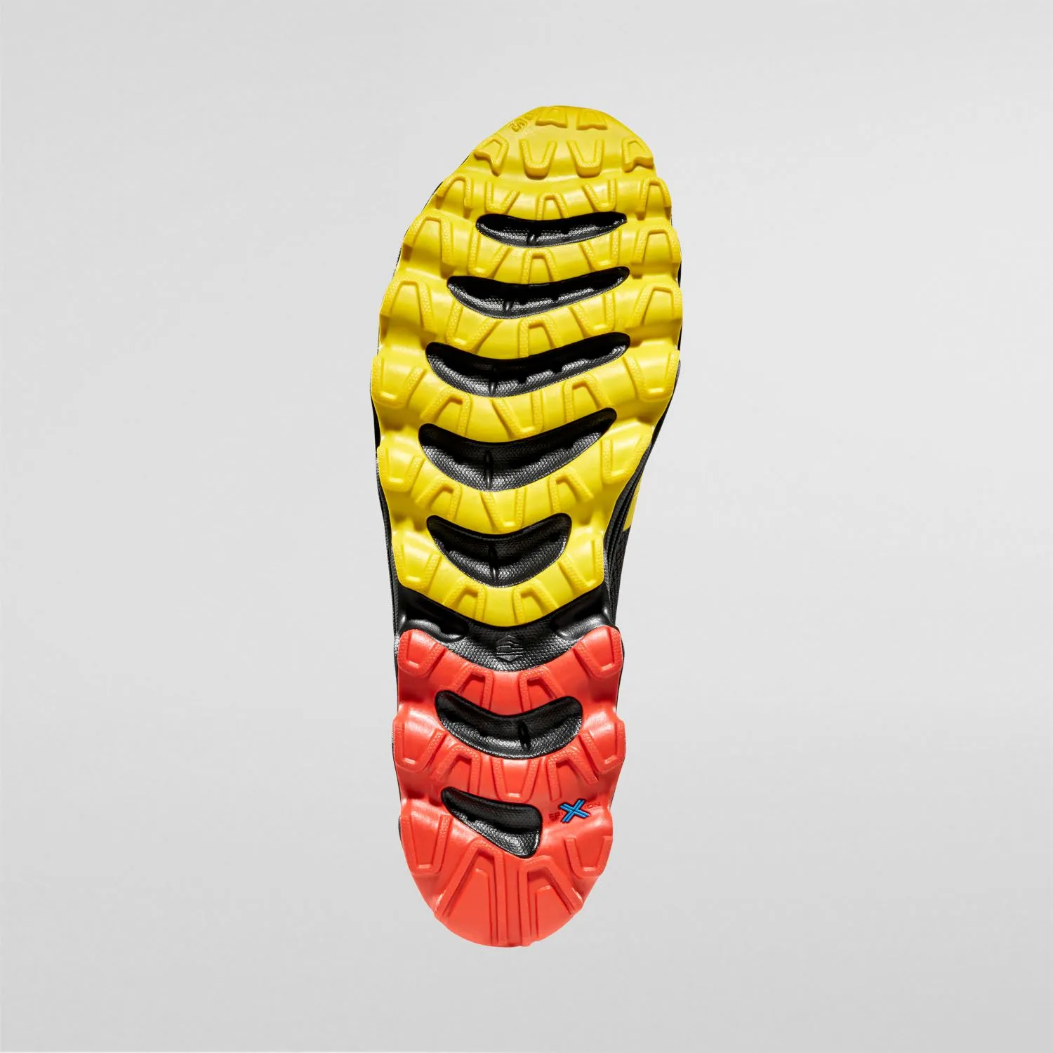 Podeszwa środkowa z lekkiej, sprężystej pianki gwarantuje szybkie wybicie i adekwatną amortyzację na wymagających odcinkach. Przyczepna guma na spodzie z agresywnym bieżnikiem zwiększa pewność kroku na mokrych skałach, błocie i luźnych kamieniach. Profil podeszwy został zoptymalizowany pod kątem stabilności i efektywnego przenoszenia siły przy podbiegach i zbiegach.