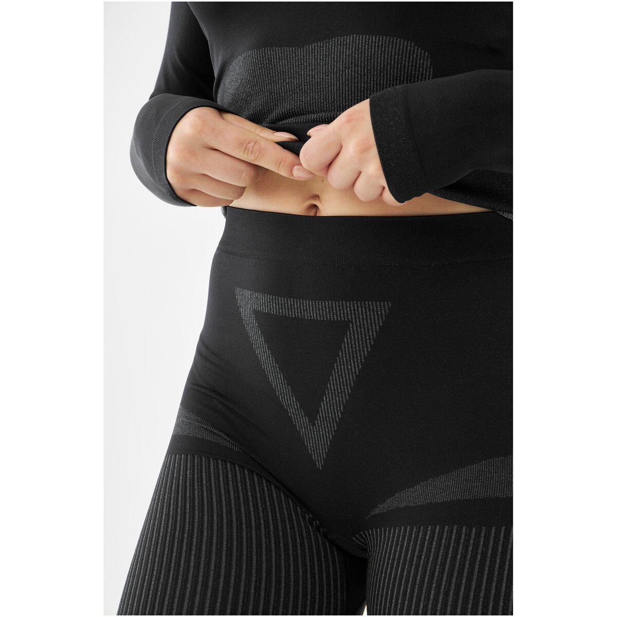 Zastosowany materiał łączy poliamid, poliester i elastan w starannie dobranych proporcjach, co przekłada się na wytrzymałość, efektywne odprowadzanie potu i elastyczne dopasowanie do sylwetki. Konstrukcja opiera się na bezszwowych strefach i ciałowo-mappingowych panelach wentylacyjnych — tam, gdzie organizm najbardziej potrzebuje oddychalności, materiał ma strukturę sprzyjającą szybszemu odprowadzaniu wilgoci. Elastyczne włókna zapewniają pełen zakres ruchu, a szybkoschnące właściwości tkaniny minimalizują uczucie chłodu po zatrzymaniu intensywnego wysiłku.