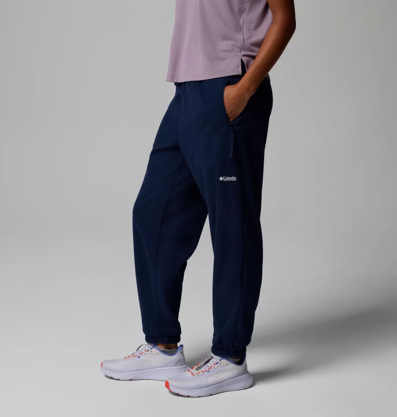 - Ściągacze przy kostkach zapobiegają podwiewaniu i ułatwiają łączenie z obuwiem sportowym.