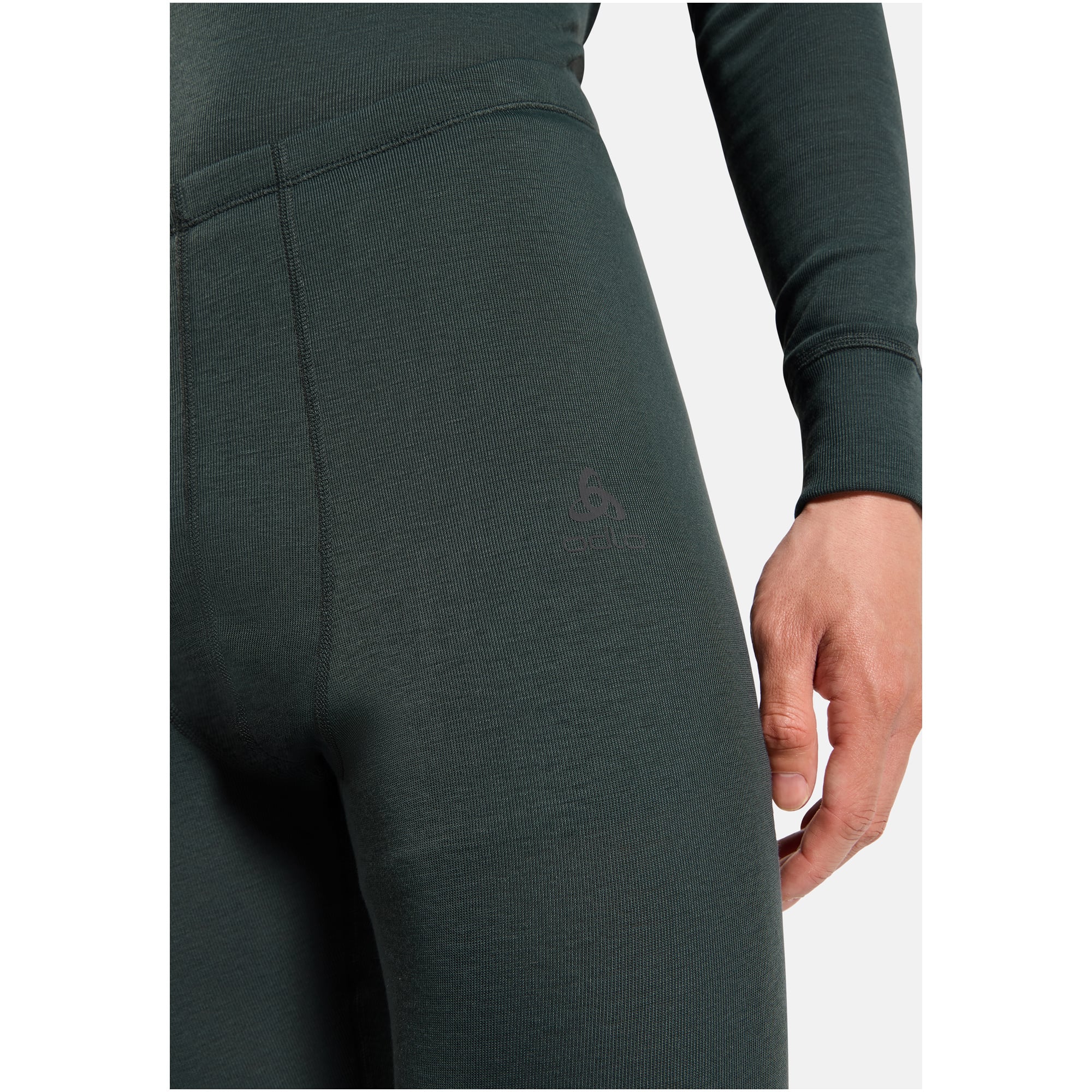 Męskie spodnie termoaktywne ODLO BL Bottom Long Active Warm w kolorze zielonym to funkcjonalna warstwa bazowa do aktywności w niskich temperaturach. Wykonane z poliestru z recyklingu, zapewniają ciepło i odprowadzanie wilgoci podczas narciarstwa czy zimowych treningów.